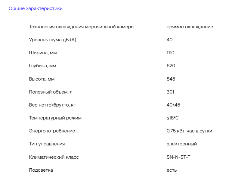 Объем, л - 301;